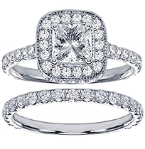 2.42 CT TW Pave Set Diamond Encrusted Princess Cut Engagement Ring Bridal Set in 14k White Gold - Size 12